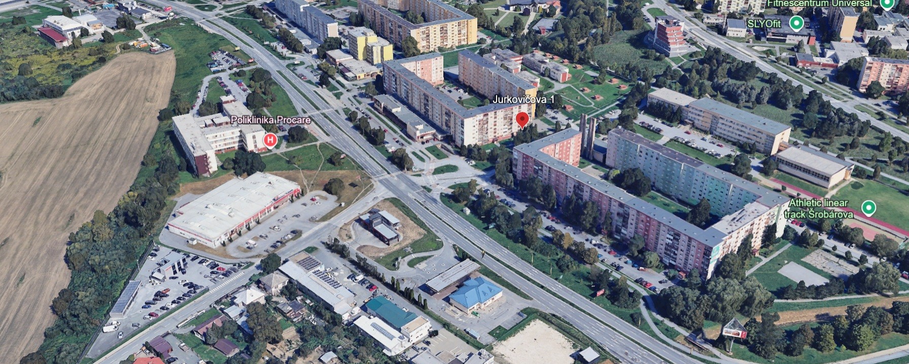 Občianska vybavenosť v okolí bytu: OC MAX – 900 m, Nákupne centrum EPERIA Shopping Mall – 800 m, Poliklinika PRO CARE – 300 m, ZŠ Šrobárová – 100 m, Materská škola Jurkovičová – 140 m.